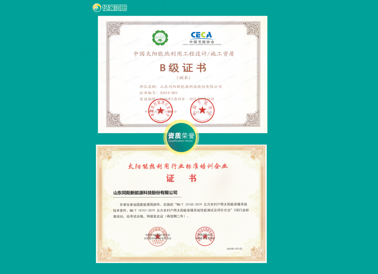 2014年公司成為中國(guó)太陽(yáng)能熱利用產(chǎn)業(yè)協(xié)會(huì)“理事單位”,榮獲中國(guó)太陽(yáng)能熱利用行業(yè)誠(chéng)實(shí)守信企業(yè)