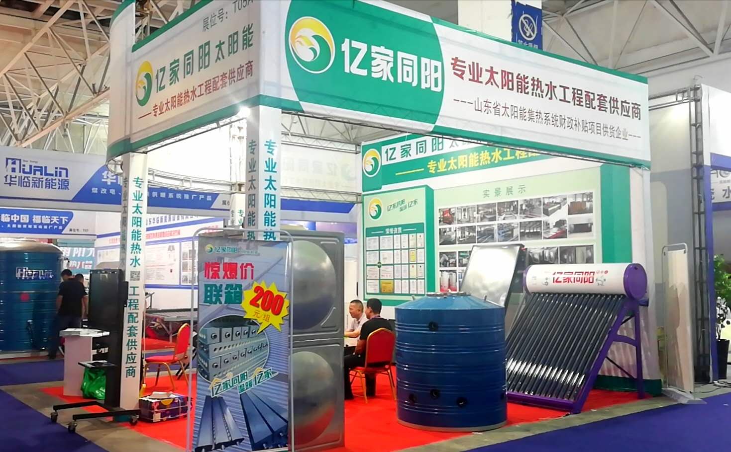 山東同陽新能源科技股份有限公司應(yīng)邀參加本次展會,并在展會上展示了由公司自主研發(fā)生產(chǎn)的真空管太陽能熱水器、陽臺壁掛式太陽能熱水器、太陽能工程圓箱、太陽能工程方箱、太陽能工程聯(lián)箱、空氣源熱泵以及光伏產(chǎn)品等系列產(chǎn)品。