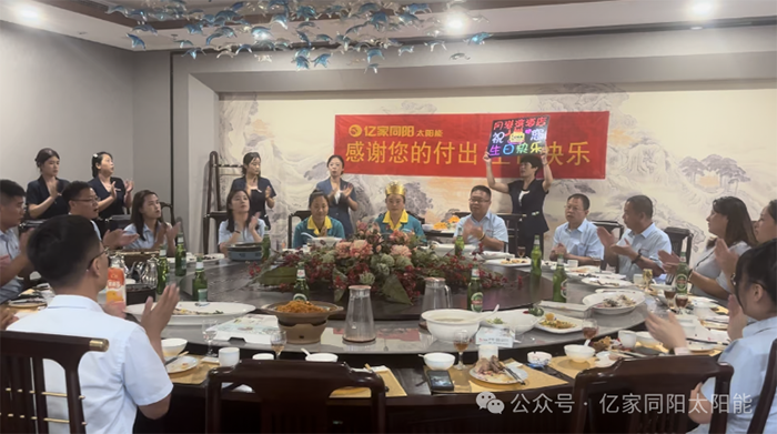 會(huì)議結(jié)束后,在月港灣酒店舉行員工生日宴。本次生日宴為一車(chē)間員工侯秀婷慶生,侯秀婷作為一名公司老員工,已在億家同陽(yáng)勤勤懇懇工作了5個(gè)年頭。公司的這一舉措,更好的宣揚(yáng)了億家同陽(yáng)的企業(yè)文化,增強(qiáng)員工對(duì)企業(yè)的歸屬感,讓員工以主人翁姿態(tài)團(tuán)結(jié)拼搏,一路跟隨成長(zhǎng),風(fēng)雨同舟。
