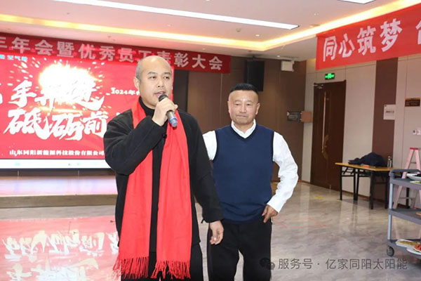 隨后,億家同陽(yáng)總經(jīng)理姜仁良首先對(duì)全體員工的努力付出表示感謝,2024年同陽(yáng)人凝心聚力、團(tuán)結(jié)一致,為完成全年各項(xiàng)工作任務(wù)做出了積極貢獻(xiàn),營(yíng)銷中心各營(yíng)銷經(jīng)理敢干敢拼,內(nèi)勤部積極配合銷售人員下訂單完成訂單,財(cái)務(wù)部不斷完善制度,更好的服務(wù)客戶,辦公室晚上加班制作上傳標(biāo)書(shū),為客戶中標(biāo)提供保障,采購(gòu)部嚴(yán)抓原材料質(zhì)量關(guān),為公司合格產(chǎn)品,提供有力保障,生產(chǎn)中心生產(chǎn)流程和布局進(jìn)行全方位優(yōu)化改進(jìn),實(shí)現(xiàn)車間專業(yè)化、自動(dòng)化流水線生產(chǎn),為客戶保質(zhì)保量完成訂單。最后姜總祝全體員工及家人,在新的一年里身體健康,工作順利,家庭幸福!