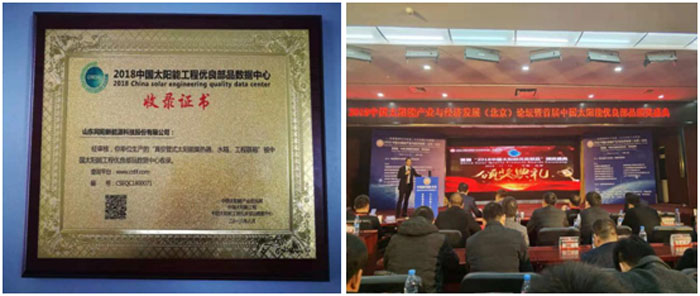 2018年11月13至14日,中國太陽能產業(yè)與經濟發(fā)展(北京)論壇暨首屆“中國太陽能優(yōu)良部品”頒獎盛典在京召開。公司總經理陳永峰先生應邀出席本次盛典,并代表公司領取“中國太陽能優(yōu)良部品”收錄證書。